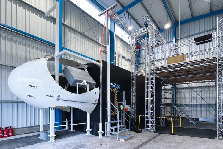 The new training hall was specially designed for realistic scenarios and rescue exercises. Customised scaffolding and an original hub of a wind turbine provide practical training conditions. The equipment is complemented by safety-relevant rescue equipment and industry-specific tools.