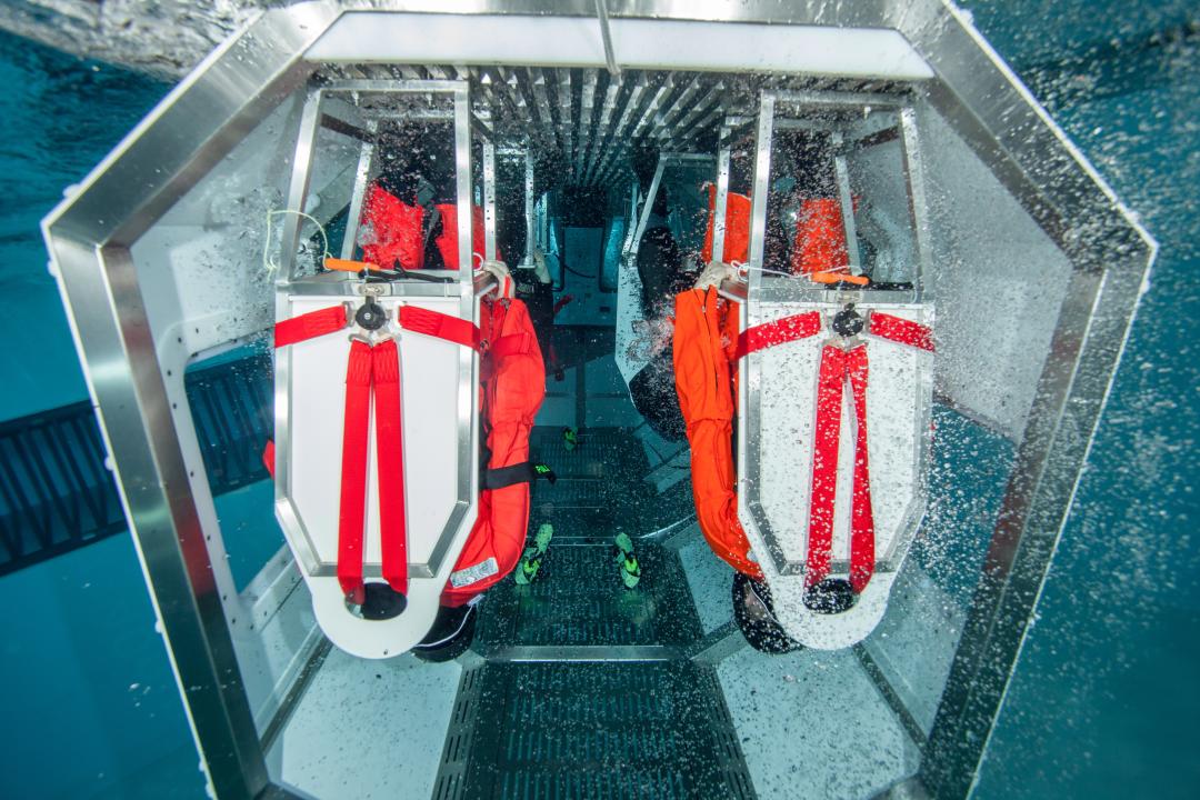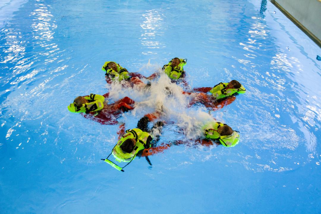 Alles, was Sie auch für einen Schwimmbadbesuch mitbringen würden: Badebekleidung, Badeschuhe, Handtuch und Duschutensilien. In unserer Wassertrainingshalle stehen Ihnen getrennte Duschen und Umkleideräume zur Verfügung. Die benötigte Ausrüstung, wie Überlebensanzug, Schwimmweste und Nasenklammer, wird von uns leihweise zur Verfügung gestellt.